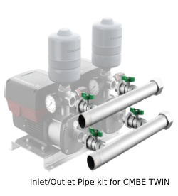 Inlet/Outlet Pipe kits are available for the CMBE TWIN booster for easy installation of an Inlet/Outlet pipe. The pipe kits include a ball valve and unions and 1½” outlet connection.